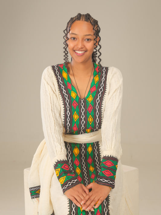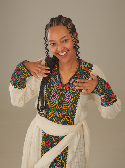 Saba Stitches | Habesha dress | Ethiopian Culture– Hand-Embroidered Dress