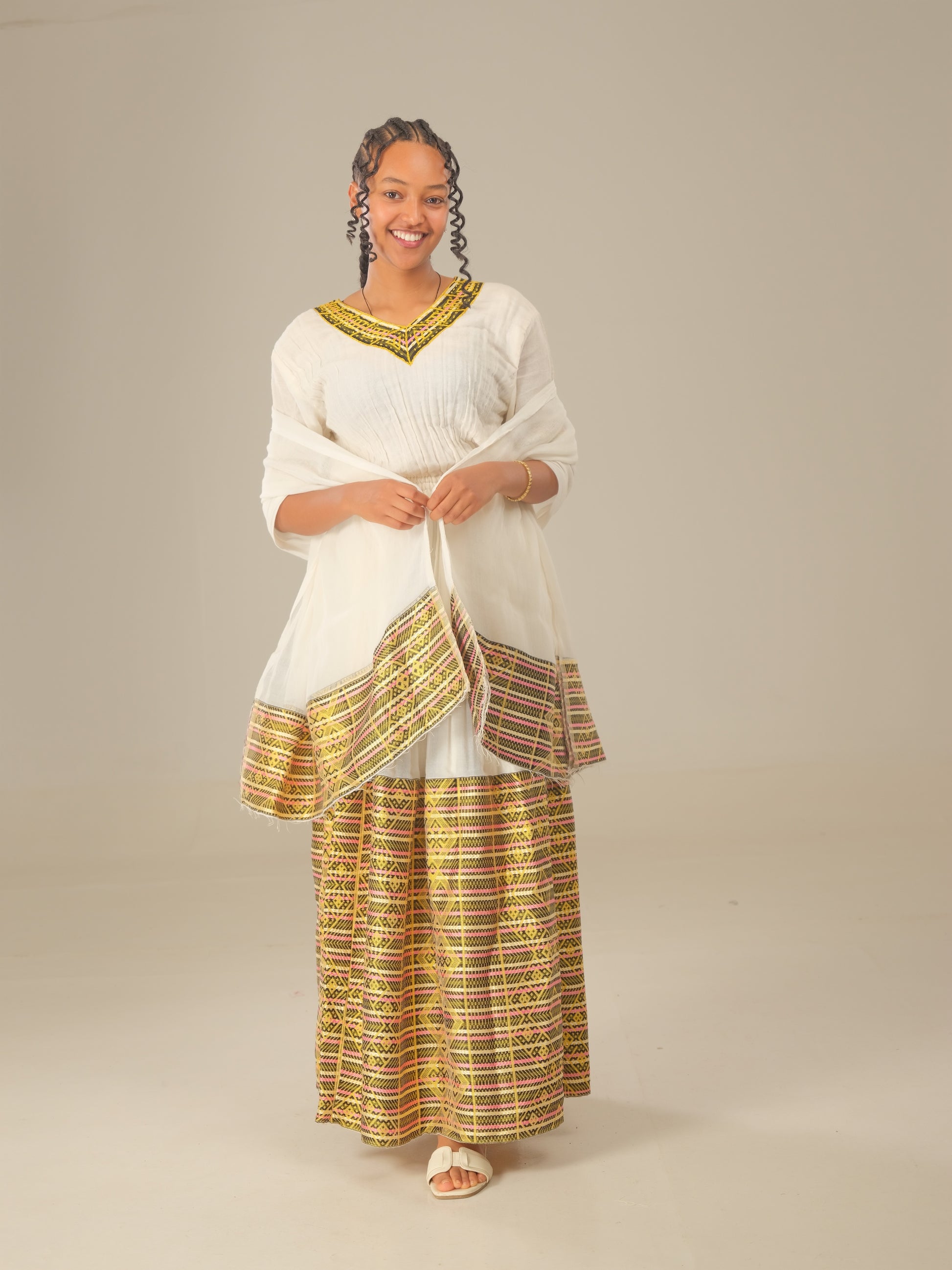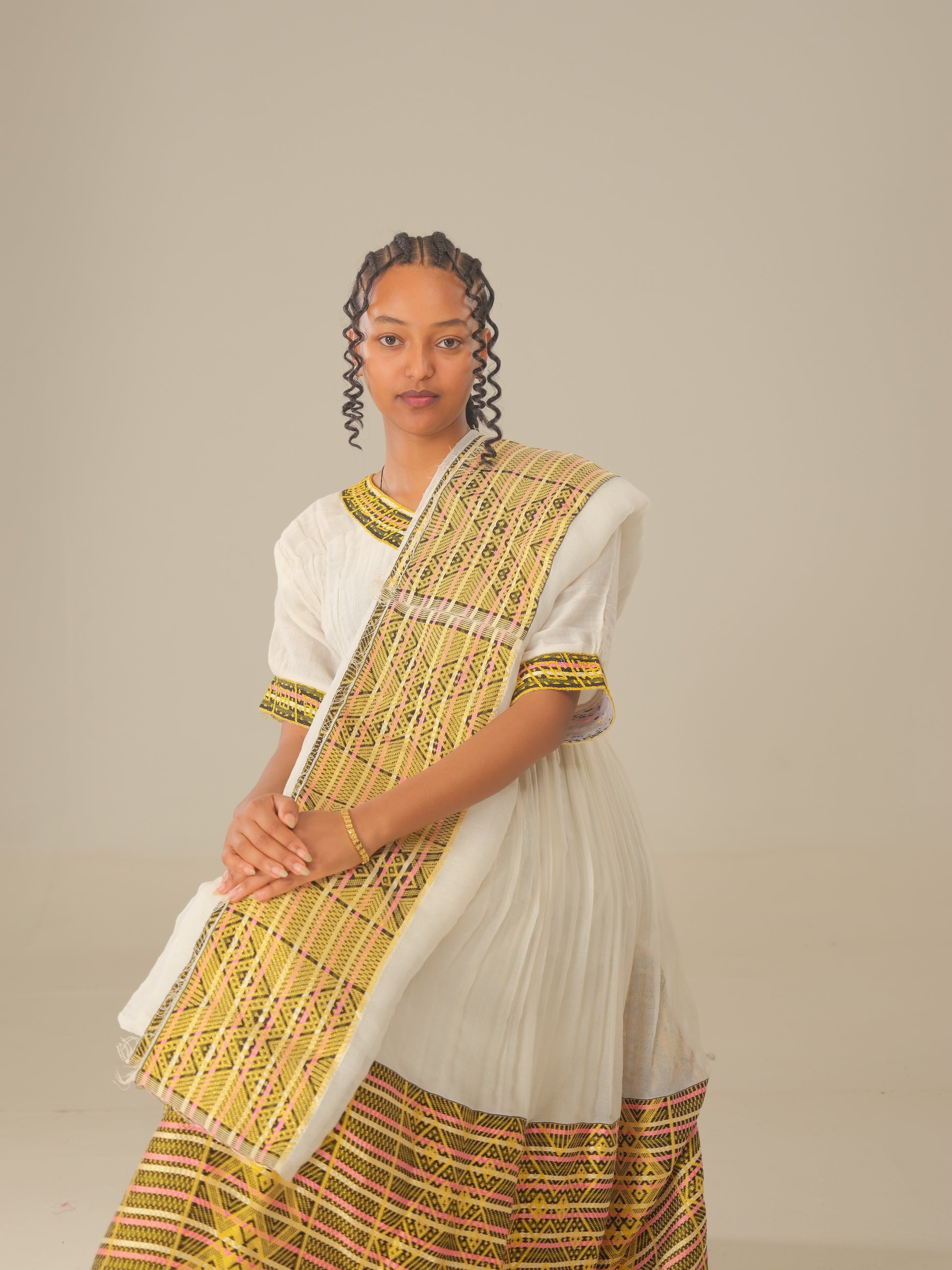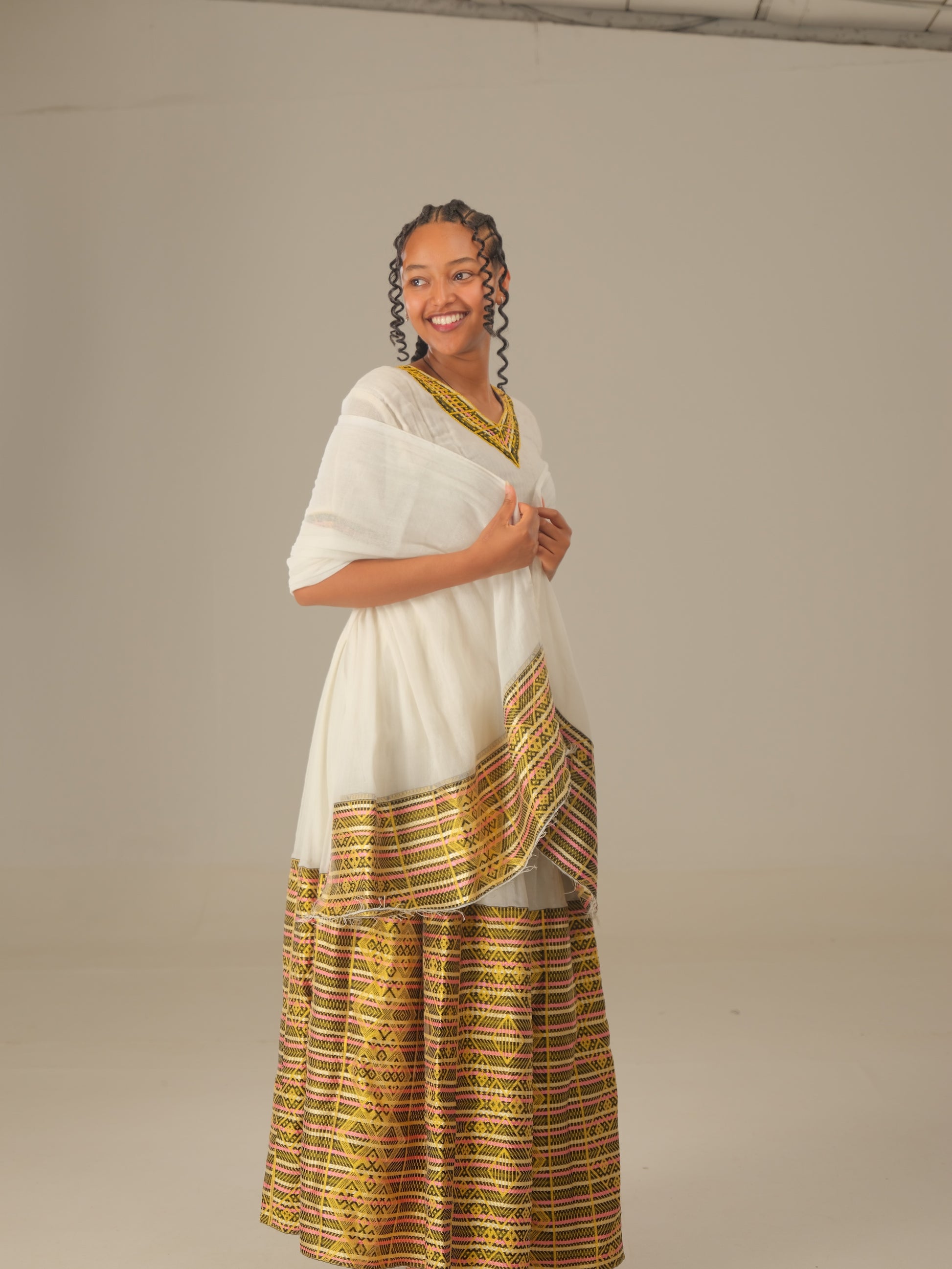 Embrace the elegance of Ethiopian tradition with the Habesha Antique Tibeb Dress. Handwoven with ancient tibeb techniques, this luxurious piece captures the essence of Ethiopia’s rich cultural heritage. Designed for those who appreciate true craftsmanship, the dress blends antique artistry with modern refinement. Whether for weddings, cultural ceremonies, or special occasions, this masterpiece offers a sophisticated statement rooted in timeless beauty.