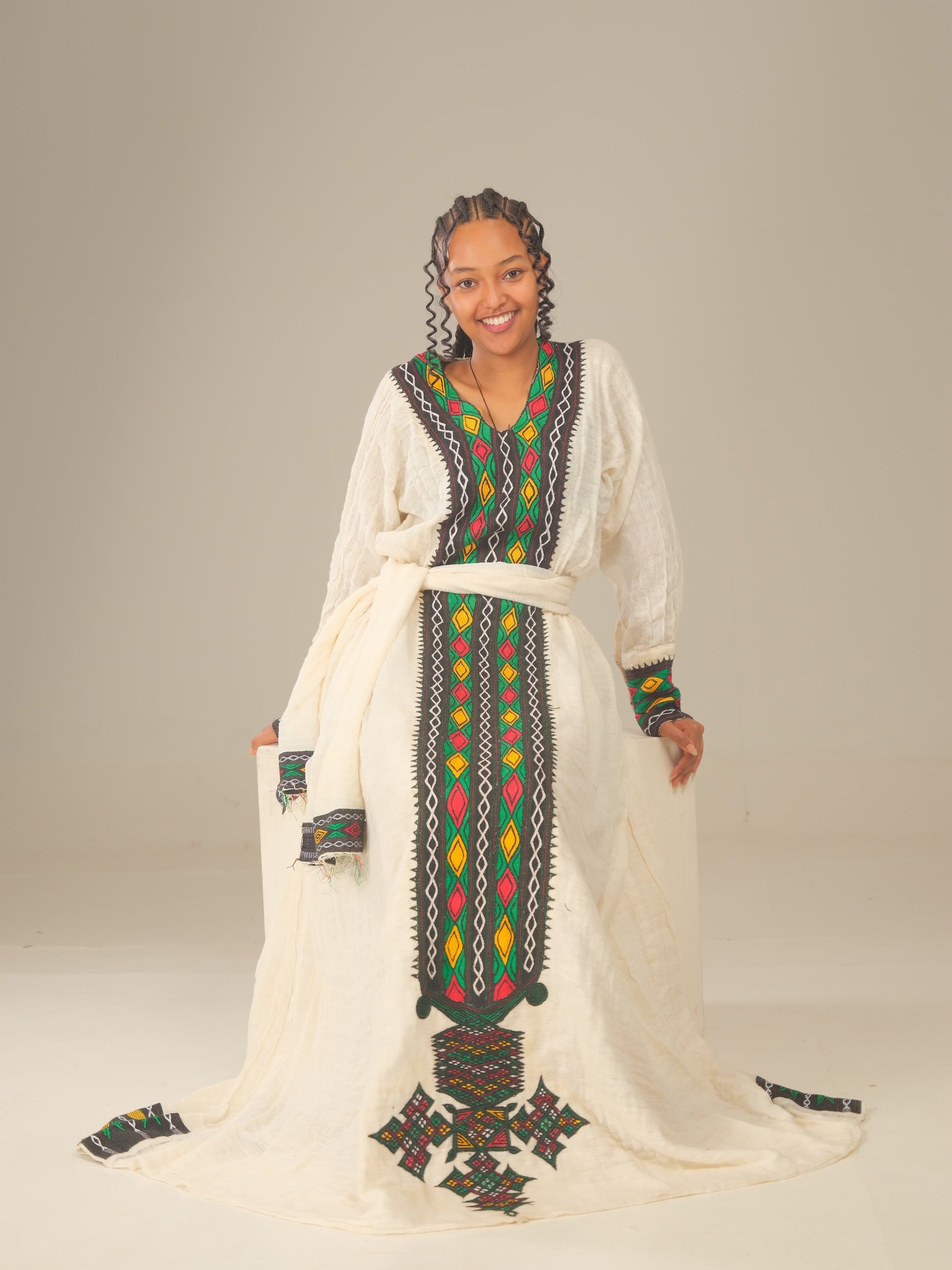 Step into timeless elegance and pay homage to Axum’s royal legacy with this unforgettable Ethiopian dress.