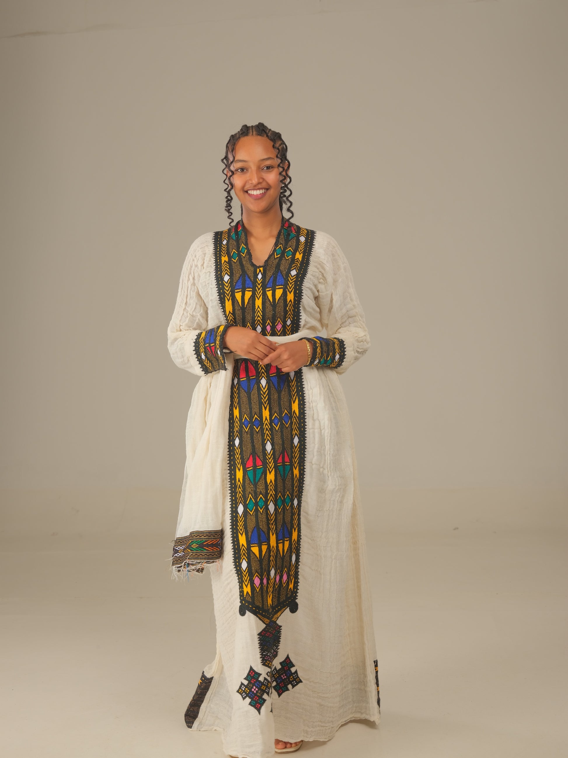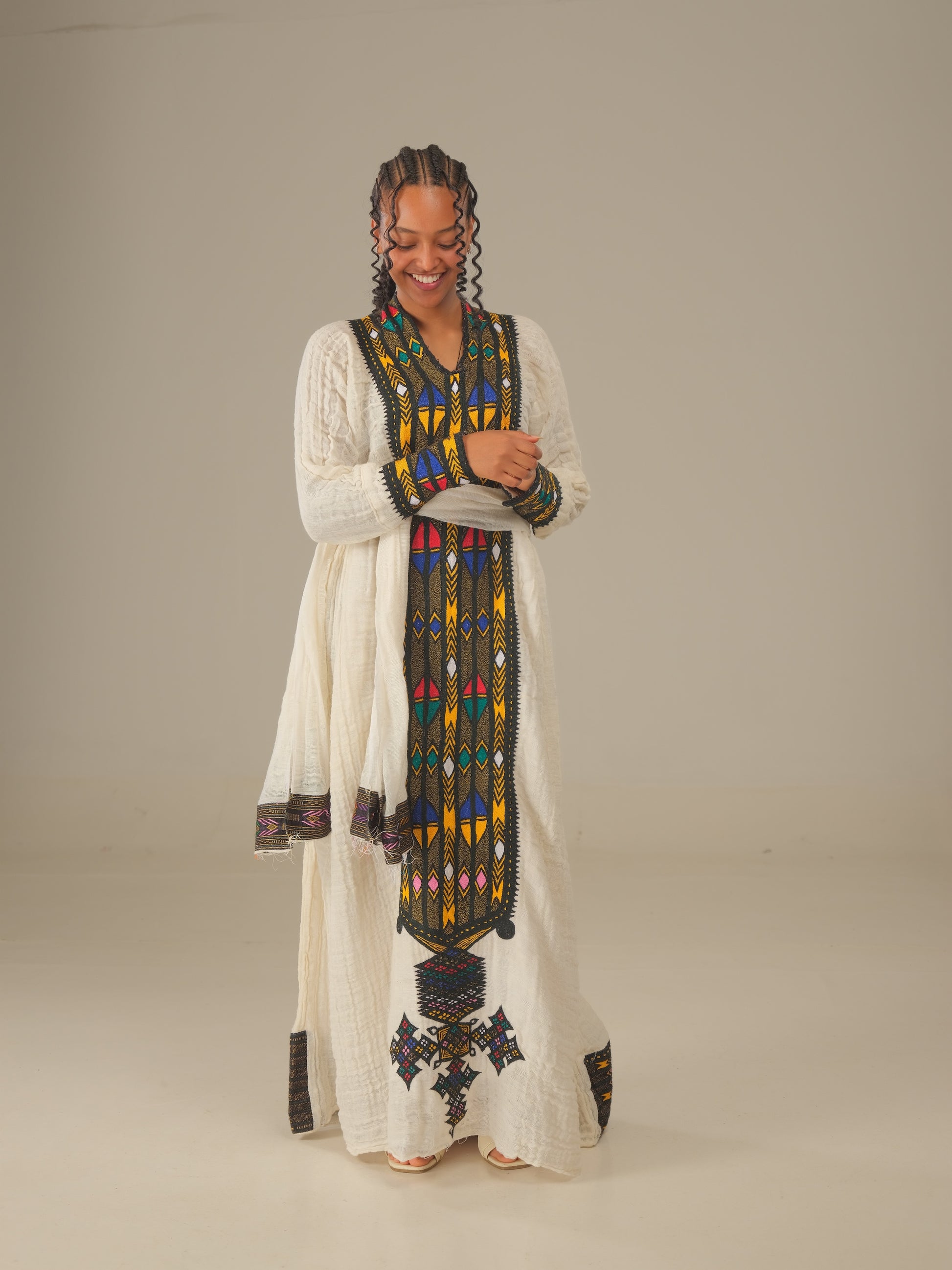 Axum Heritage Hand Embroidery Dress | Ethiopian | Habesha