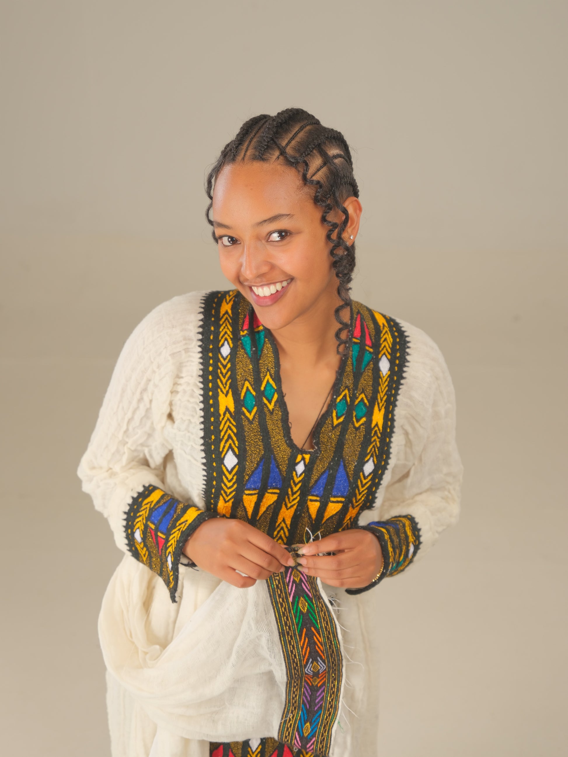 Intricate Axum Hand Embroidery: The dress is adorned with exquisite, handcrafted embroidery, reflecting the rich cultural history and artistry of Axum.