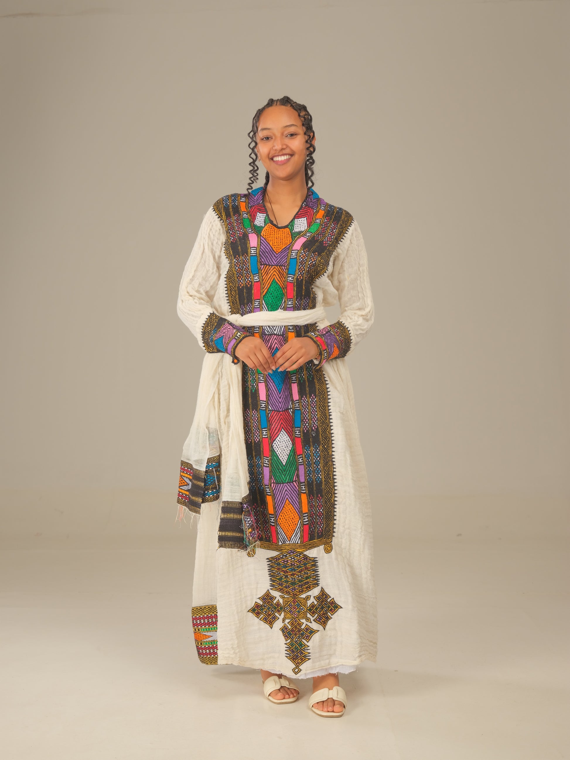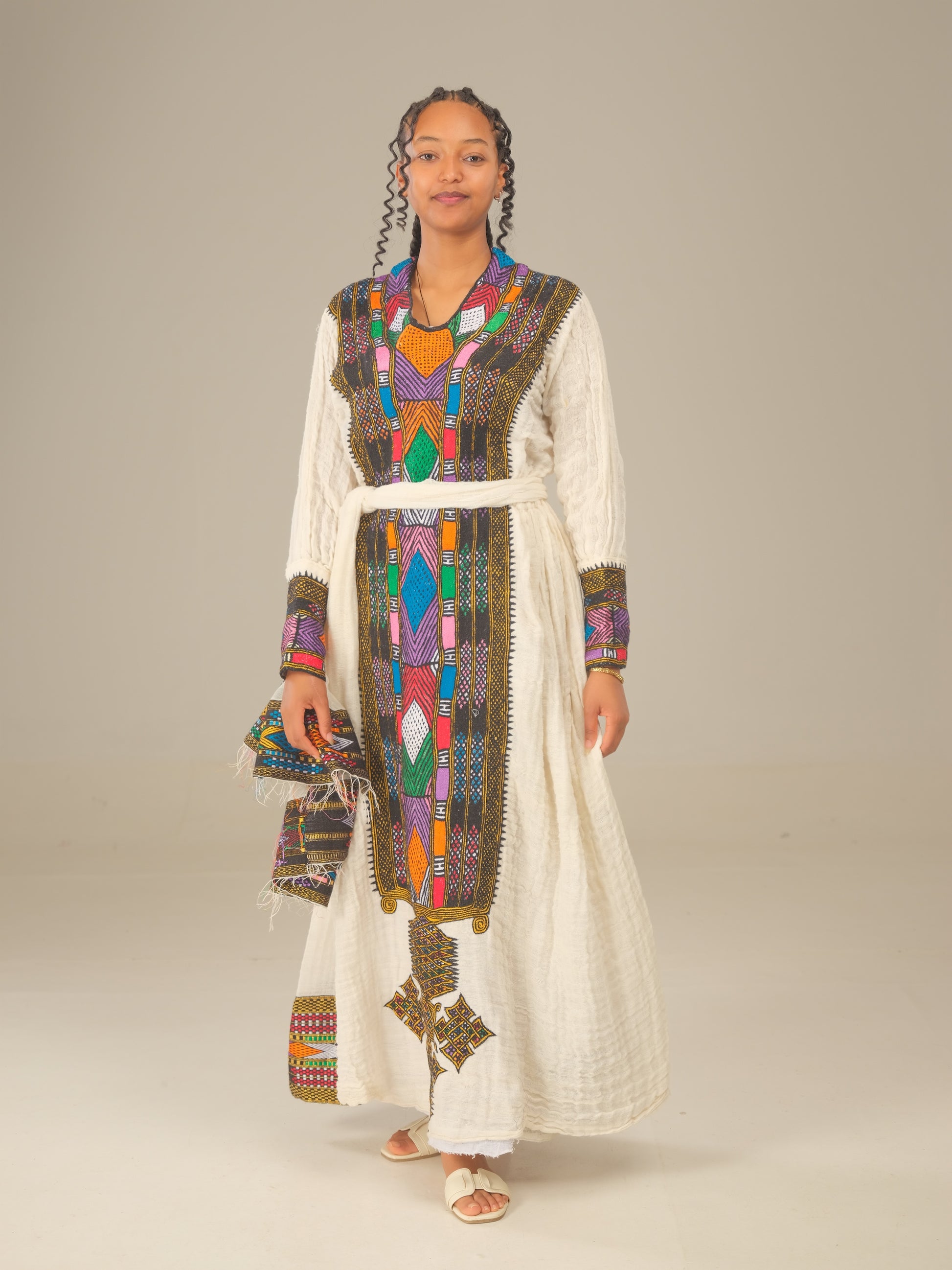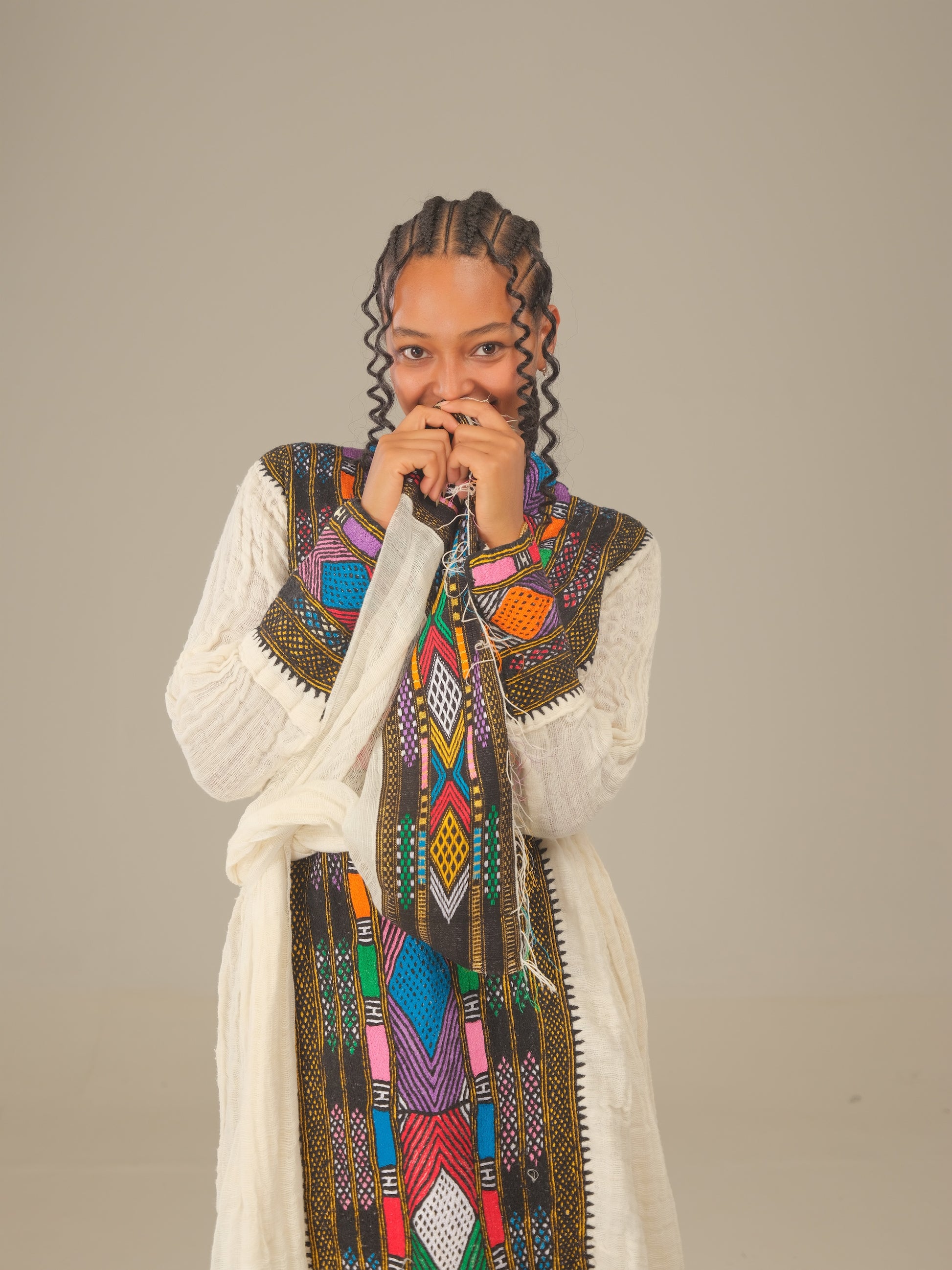 Hand-embroidered detailing inspired by the rich cultural history of Axum