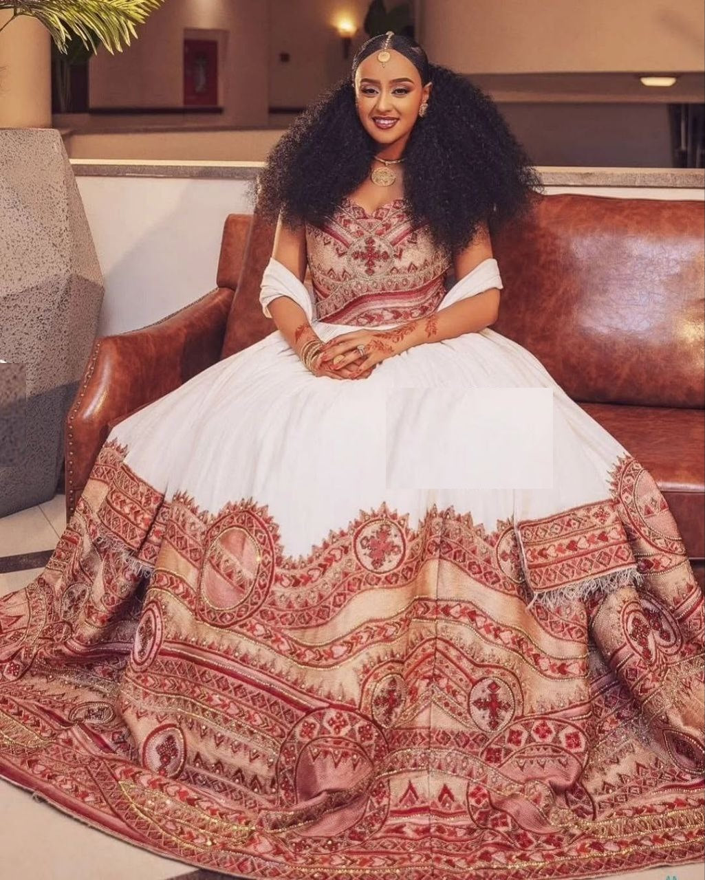Step into brilliance with this stunning embroidered Ethiopian wedding dress, exquisitely adorned with shiny decorative stones that catch the light and command the room. Designed for brides who want to honor tradition with high-impact elegance, this gown is a radiant blend of intricate embroidery and sparkling detail.