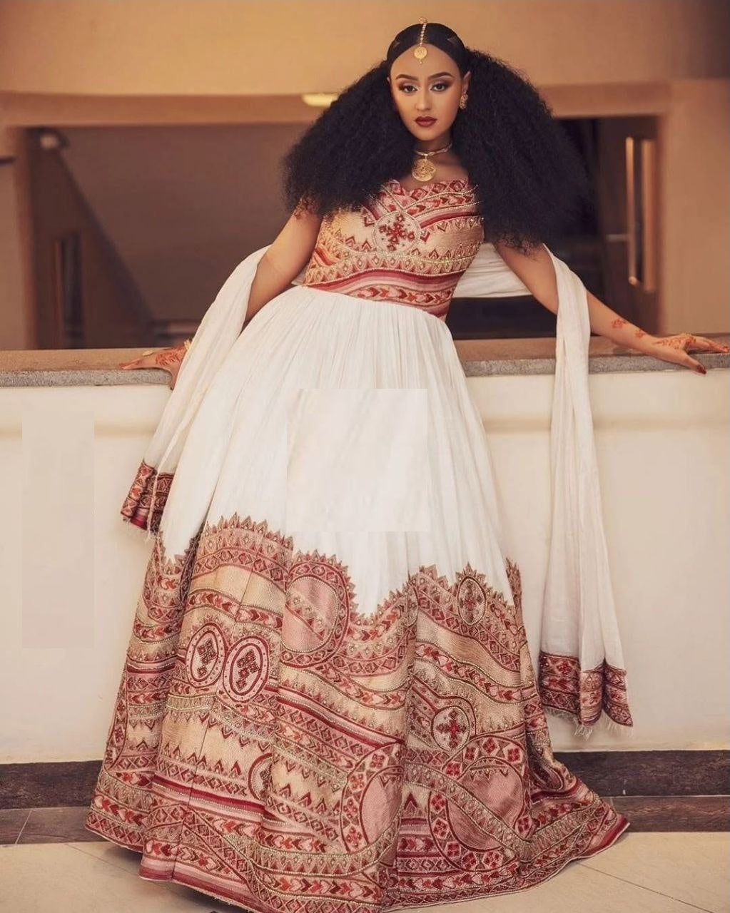 Embroidered Ethiopian Wedding Dress with Shiny Stone Accents – Radiant Heritage | Shiromeda Threads