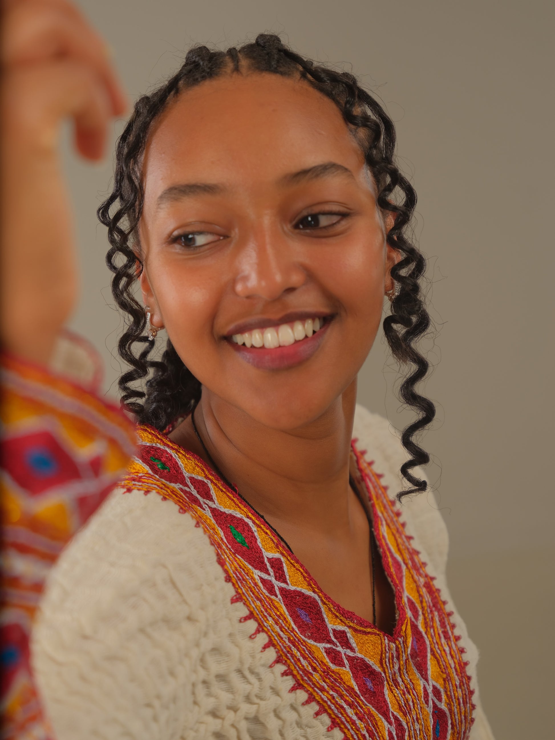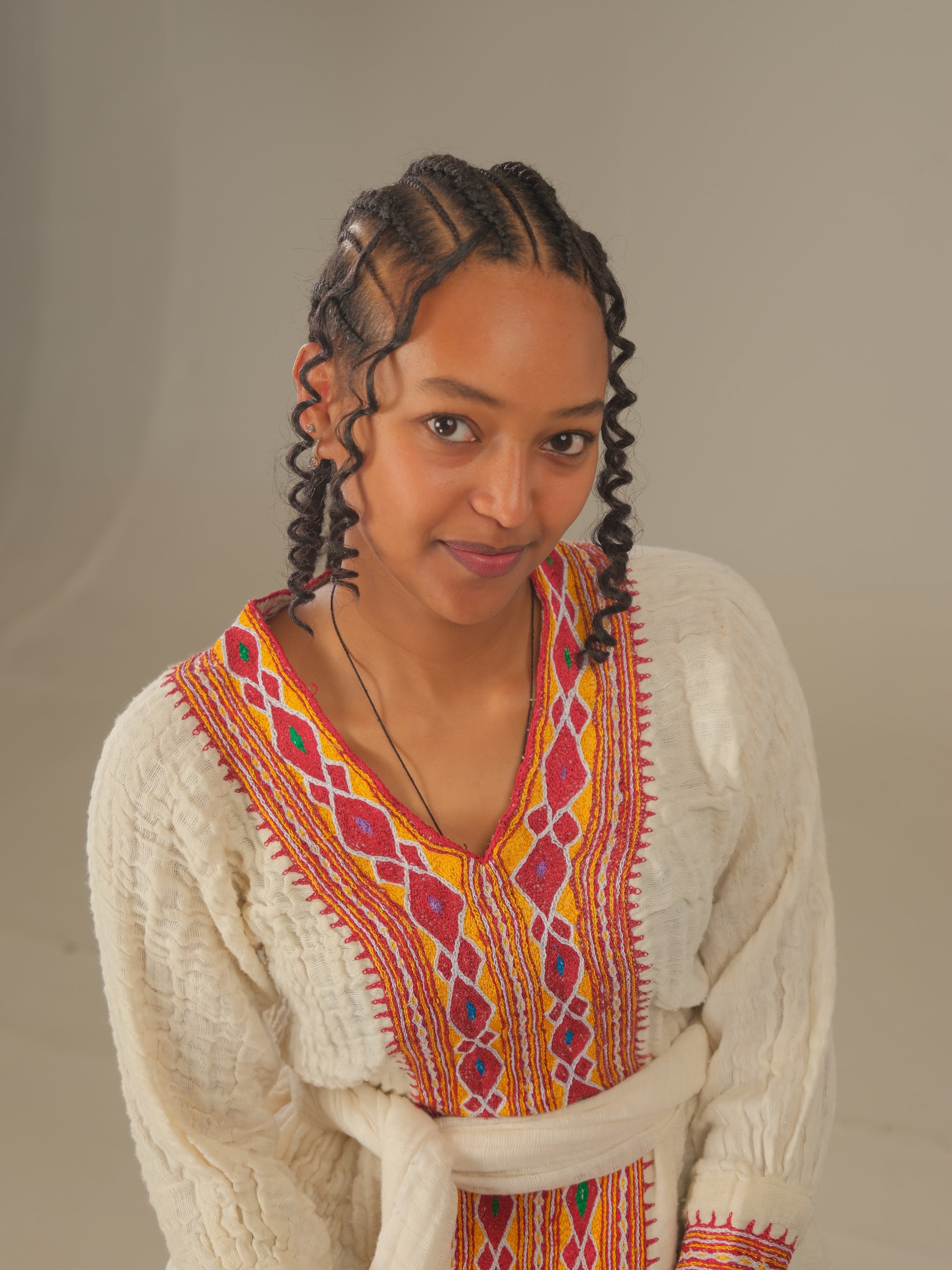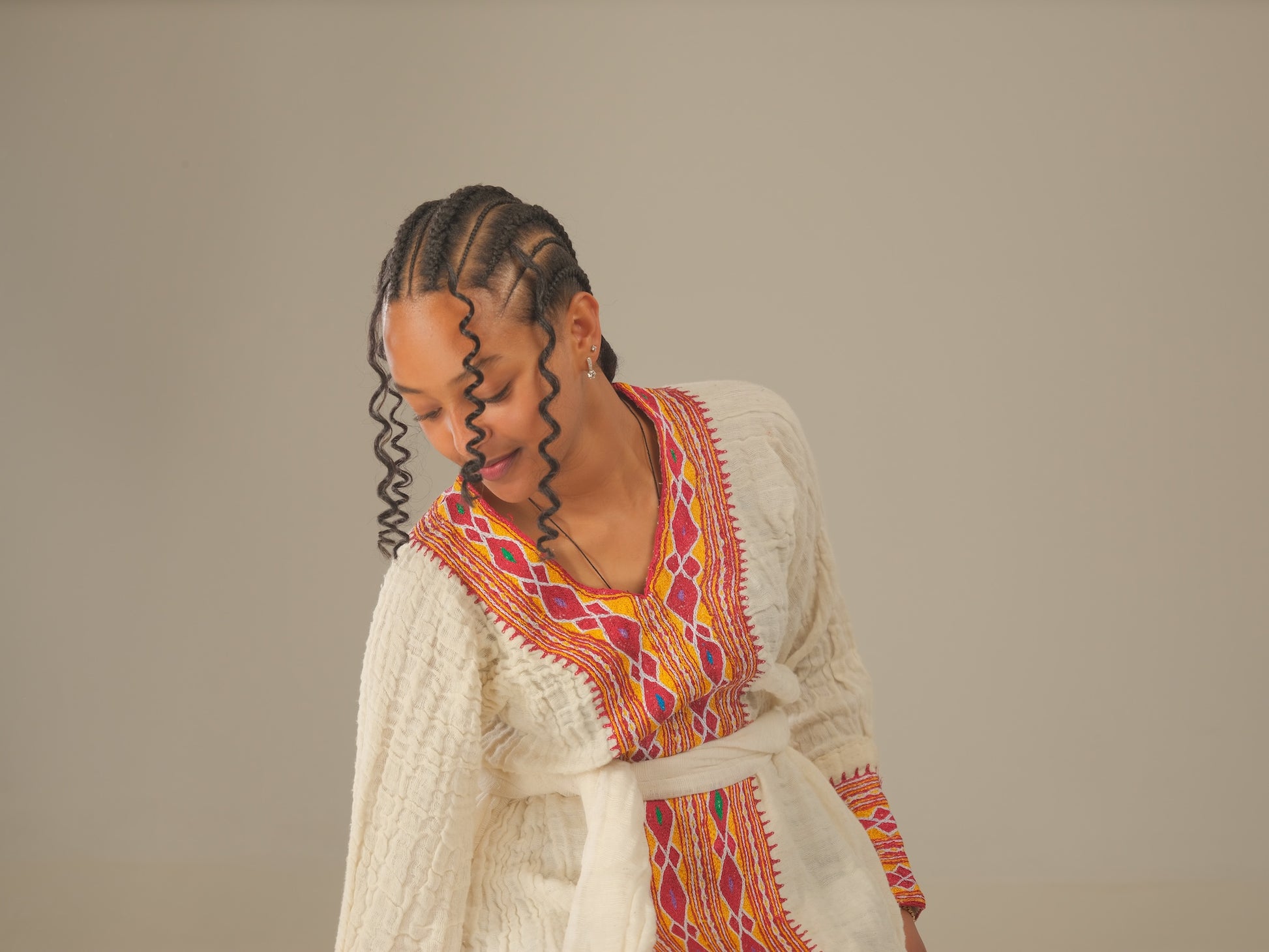 Cultural Symbolism: The Axum-inspired embroidery and vibrant color make this dress a powerful symbol of Ethiopian pride and heritage.