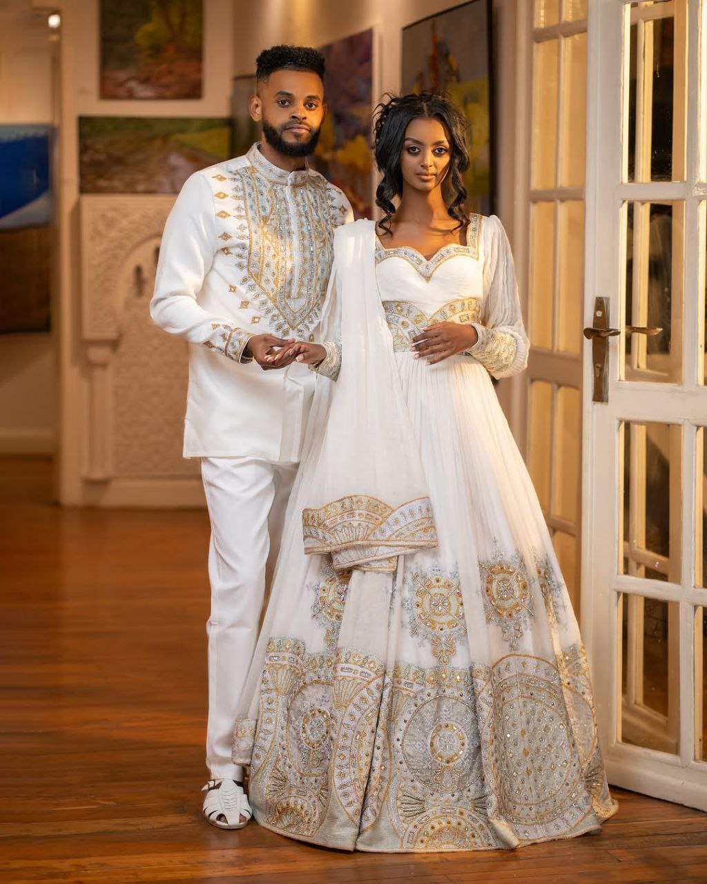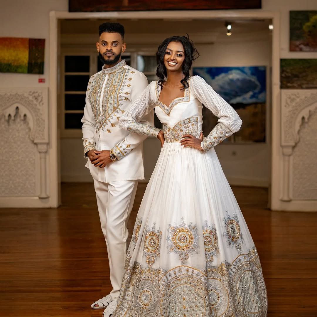 Made in Ethiopia, this Shiromeda Threads wedding ensemble is a celebration of strength, unity, and tradition — designed for the couple who leads with culture and love.