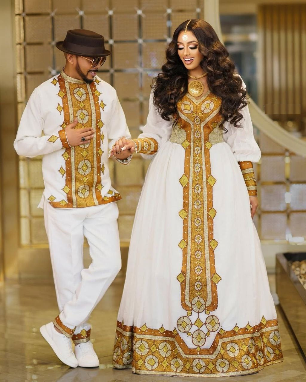 Simple Ethiopian Wedding Dress – Detailed Brown Embroidery Elegance | Shiromeda Threads