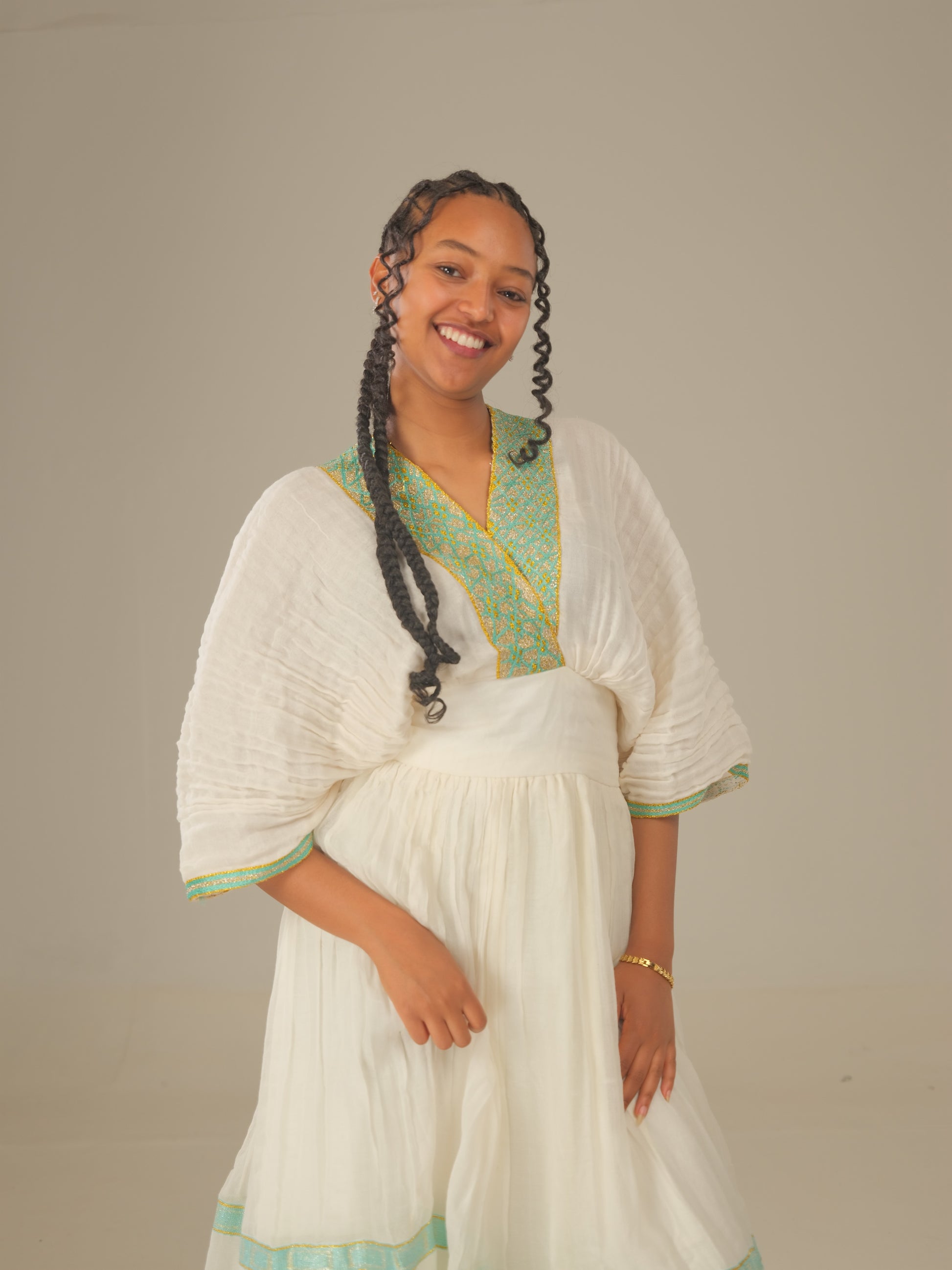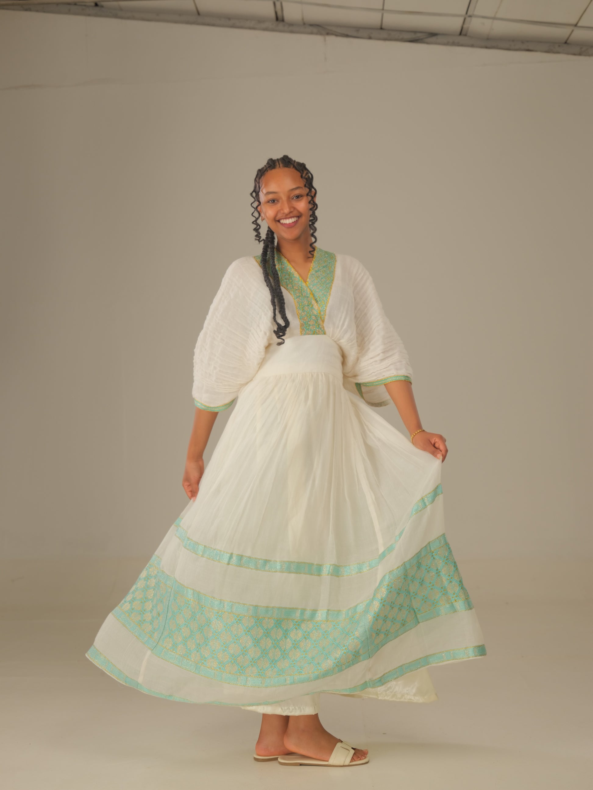 Celebrate Ethiopian heritage with modern elegance in this Sky Blue Habesha Tibeb Dress. Whether attending a traditional event or a formal gathering, this exquisite dress blends classic craftsmanship with contemporary style, making it a standout piece for any occasion.